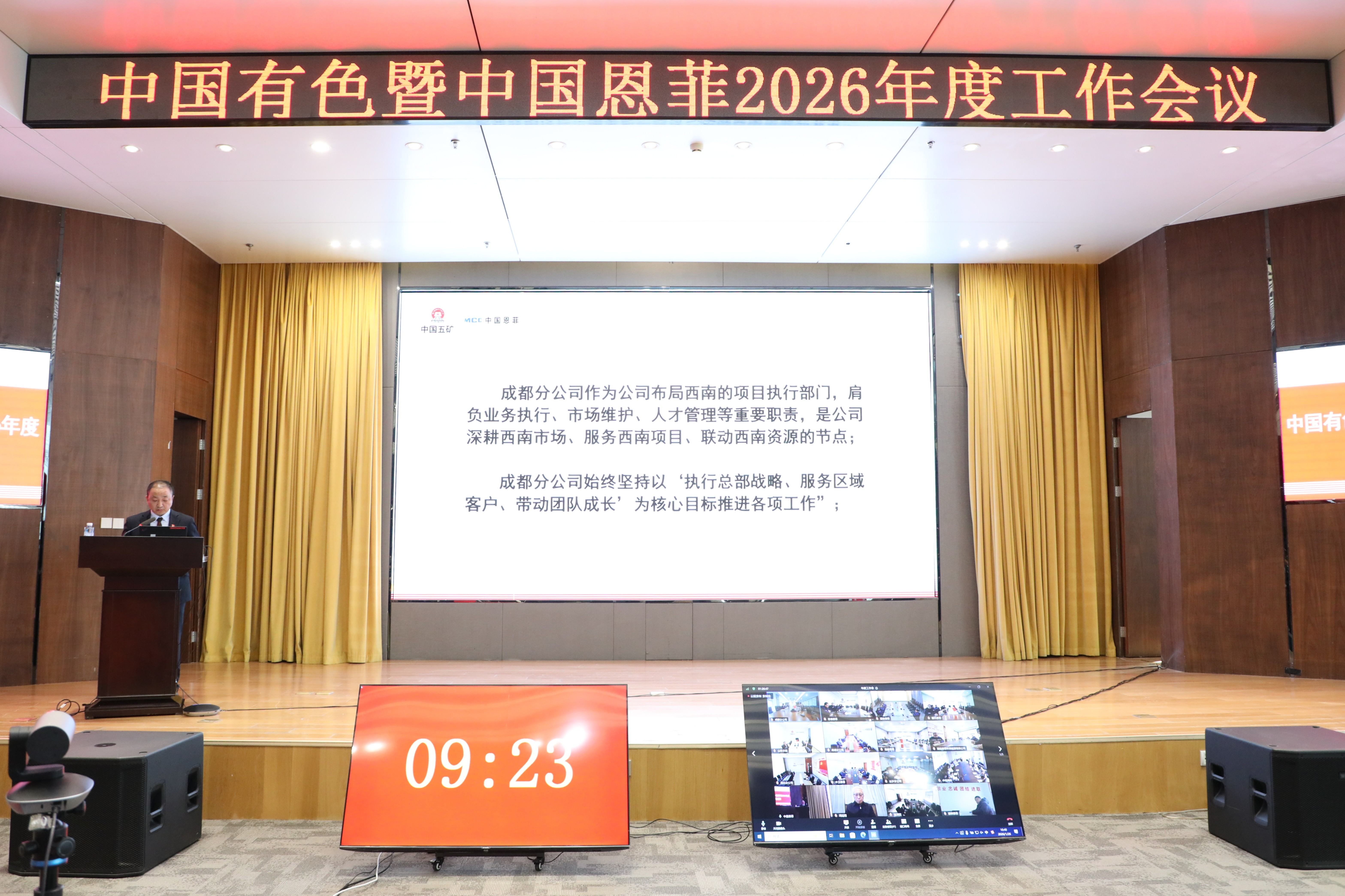1月26日,中國(guó)有色暨中國(guó)恩菲召開2026年度工作會(huì)議。公司黨委書記、董事長(zhǎng)劉誠(chéng)出席會(huì)議并講話,黨委副書記、總經(jīng)理鮑巍作工作報(bào)告,總會(huì)計(jì)師、副總經(jīng)理張雁鏑宣讀表彰決定,黨委副書記張合文主持會(huì)議。公司外部董事視頻參會(huì),公司領(lǐng)導(dǎo)班子成員出席會(huì)議。