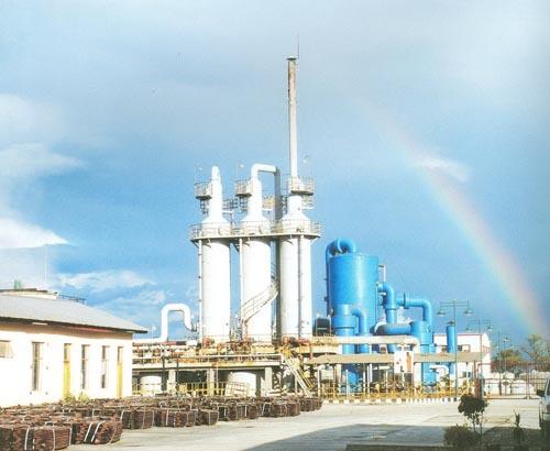 承擔設計工作,采用典型“絕熱增濕稀酸洗滌凈化+兩轉(zhuǎn)兩吸”制酸工藝流程,設計能力年產(chǎn)31萬噸98%濃硫酸。2009年項目順利投產(chǎn),實際生產(chǎn)能力達到年產(chǎn)37~38萬噸。