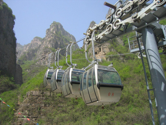2005年5月建成。索道位于河南省神農(nóng)山國(guó)家級(jí)風(fēng)景名勝區(qū),型式為單線脈動(dòng)循環(huán)車組式,線路水平距離842米,高差425米,單向小時(shí)運(yùn)量400人,運(yùn)行速度為3.6米/秒。