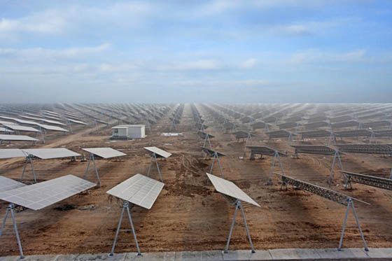 ?。?)中國恩菲于2011年4月份啟動中衛(wèi)一期30MW并網(wǎng)光伏發(fā)電項目建設工作,于12月22日全站并網(wǎng)運營,創(chuàng)造了國內同等規(guī)模光伏電站建設的新記錄,該電站成為寧夏自治區(qū)本年度最先并網(wǎng)也是并網(wǎng)規(guī)模最大的光伏電站,同時成為目前全球最大的全跟蹤光伏電站。