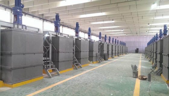 目前,富氧常壓直接浸出技術(shù)處于國(guó)際鉛鋅冶煉行業(yè)領(lǐng)先水平。中國(guó)恩菲引進(jìn)并消化吸收了芬蘭OUTOTEC公司硫化鋅精礦常壓富氧直接浸出技術(shù),并依據(jù)實(shí)際情況,針對(duì)原料與工藝的特點(diǎn),自主研發(fā)了硫化鋅精礦與中性浸出渣混合浸出、稀有金屬回收、氟氯脫除、沉鐵渣的資源化處理等技術(shù),并將其與現(xiàn)有的傳統(tǒng)煉鋅流程進(jìn)行有機(jī)融合,形成一系列擁有自主知識(shí)產(chǎn)權(quán)的新工藝、新裝備。